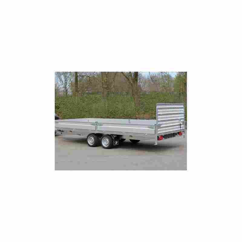 Ce porte-engin possède une capacité de charge élevée pour répondre aux exigences professionnelles. Il est doté d’un châssis galvanisé à chaud pour une protection accrue contre la corrosion. Ses dimensions optimales permettent le transport de divers équipements en toute simplicité. Les ridelles latérales amovibles facilitent le chargement et le déchargement des engins. Le plancher robuste assure une surface stable et résistante pour les équipements lourds. Les anneaux d’arrimage intégrés garantissent une fixation sécurisée de la charge. Son timon renforcé assure une connexion fiable avec le véhicule tracteur. Les roues de grand diamètre apportent une meilleure adhérence et un confort de conduite.