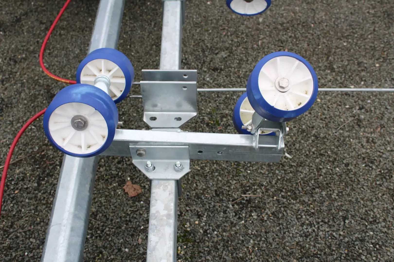 - Chemin de rouleaux central, facilitant l’alignement du bateau lors de la mise à l’eau.